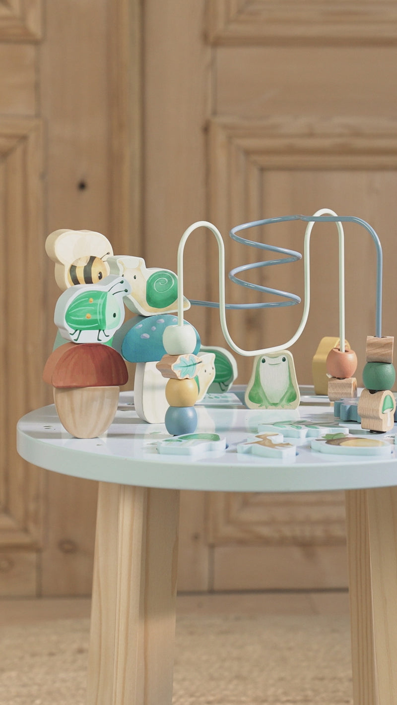 Otkrijte sve aktivnosti koje nudi radni stol. Pomozi galebovima prenijeti kuglice po spirali. Ili sagradi svjetionik. Dovrši zagonetku, zavrti kotače i pređite ocean s malim čamcima. Drveni, višenamjenski stol je izazov za vaše dijete na razne načine. Igra odlično potiče razvoj fine motorike. Zahvaljujući sigurnom i uravnoteženom dizajnu stol potiče i ustajanje.